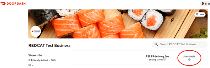 This option will send a Store Activation Status Change call to DoorDash and the store will be listed as Unavailable on the DoorDash platform, preventing customers from placing an order.