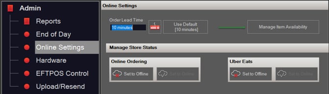 To access Item Availability Rules from a POLYGON POS you will need to access the Admin menu, then Online Settings.